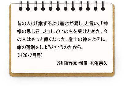 私たち日本人は人間にとって最も大切な「生命」への心づかいを失っていませんか