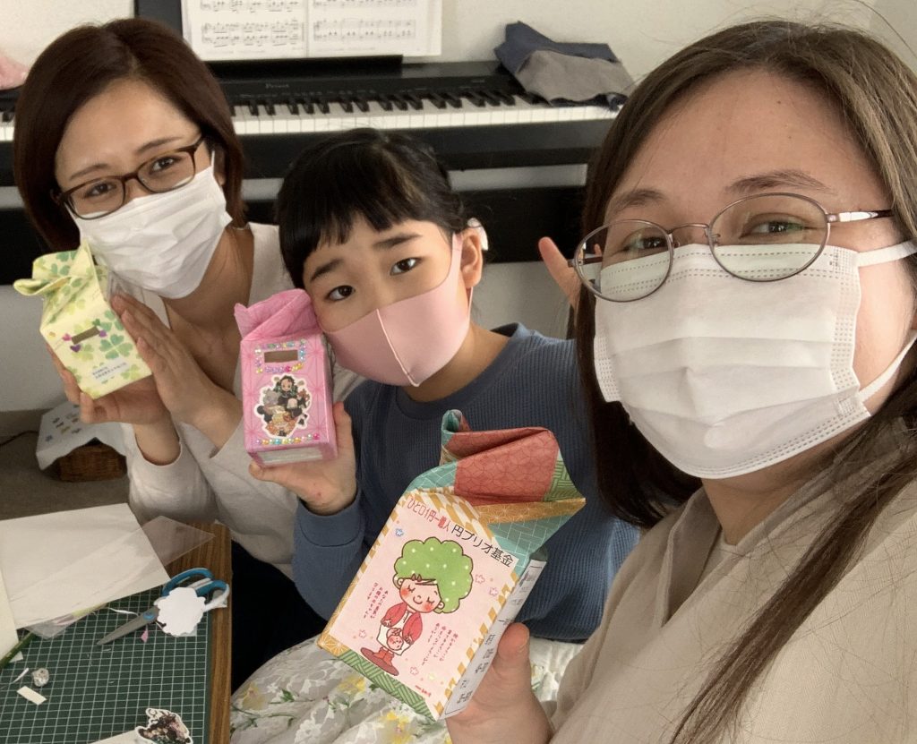 些細な事でも、自分にできる範囲でお手伝いしたいと思いました。基金箱を作ることは少し大変でしたが、お役に立てたなら、と思っています。活動の合間に拝見した「生まれてきてくれてありがとう」の中で特に印象的だったのは、東日本大震災の中、妊娠をしたお母さん達とそれを支えた円ブリオの様子でした。<中略>自分達が作っている募金箱に集められたお金が実際に支援に繋がっていると知れて、とてもやりがいを感じました。